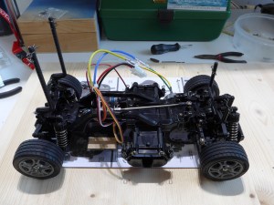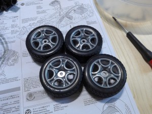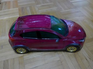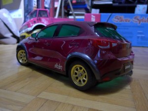 And then some Paint. I used Tamiya PS40 Translucent Pink with PS5 Black for the Body. PS44 Translucent Green for the Windows and PS23 Gun Metal for the Fender Flares. The Flares are extra parts from some chinese RC Bodykit.